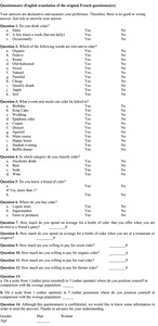 The questionnaire is presented in Appendix 1. It includes 14 questions divided into three components. The first part defines habits, customs, and preferences about cider. Since Pollak (1970, 1976) we know that current preferences are influenced by past consumption and consequently that habit formation influences the current demand for a good.